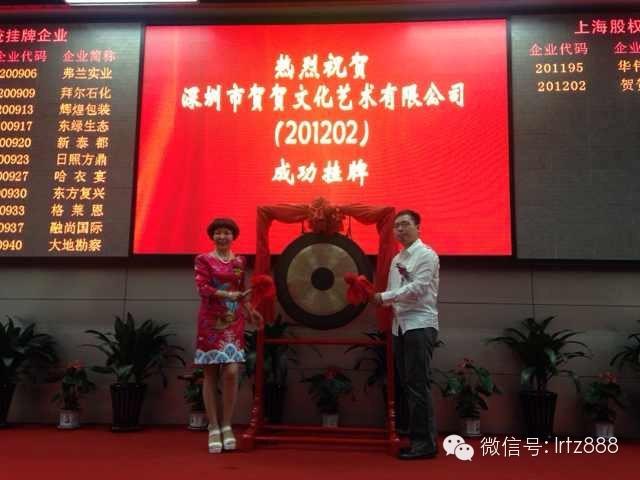 廣東省首家非遺企業(yè)深圳市賀賀文化藝術(shù)有限公司于2014年8月6日,在上海股權(quán)托管交易中心舉行掛牌成功(企業(yè)簡(jiǎn)稱:賀賀文化,股權(quán)代碼:201202)。