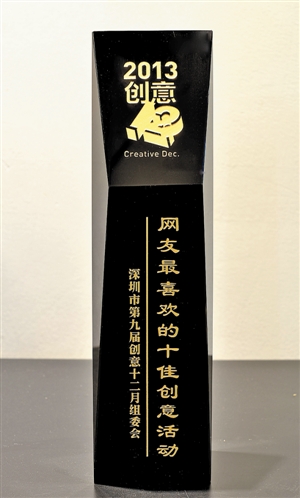 深圳市海龍文化傳播機構(gòu)(以下簡稱海龍)成立至今14載,始終如一,堅定地走自己的路,在文化創(chuàng)意產(chǎn)業(yè)浪潮中激流勇進,取得不菲的成績。2014年3月27日,海龍憑借“第二屆中國(深圳)字控藝術(shù)節(jié)”,在“2013第二屆深圳創(chuàng)意影響力評選”中獲得深圳市第九屆創(chuàng)意十二月網(wǎng)友最喜歡的十佳創(chuàng)意活動,成為寶安區(qū)惟一入圍十佳的創(chuàng)意活動。