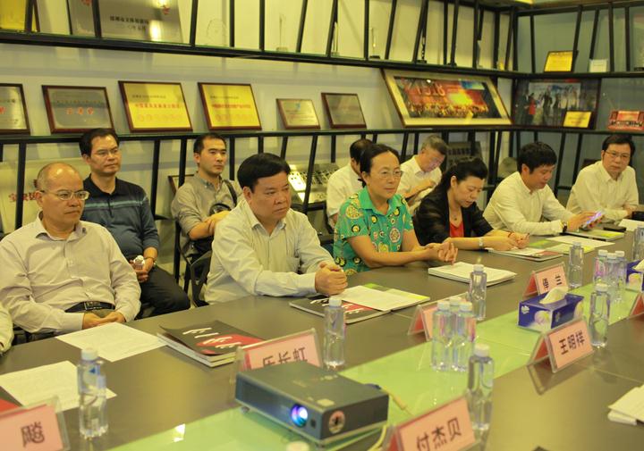 本次重點參觀園區(qū)以突出藝術(shù)品展覽展示空間的凌云閣、全國首家上市非物質(zhì)文化遺產(chǎn)企業(yè)深圳市賀賀文化藝術(shù)有限公司、深圳市矩陣工業(yè)產(chǎn)品設(shè)計有限公司等,并聽取寶安區(qū)文化產(chǎn)業(yè)發(fā)展辦公室以及深圳F518時尚創(chuàng)意園的發(fā)展報告。文產(chǎn)辦王主任匯報了寶安區(qū)的基本情況,重點說到文化產(chǎn)業(yè)占全區(qū)生產(chǎn)總值的近10%,在全國同類型占比中數(shù)前列;F518相關(guān)人員在匯報中重點提及了不久前董事長鐘偉鵬曾向主管部門提交建立民族文化資源庫,以及開發(fā)服務(wù)于小微企業(yè)的信息化平臺。