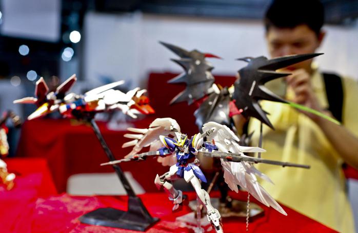 此次活動(dòng)分為同人交流、舞臺(tái)活動(dòng)、互動(dòng)活動(dòng)等幾大板塊,突出展示與互動(dòng)。漫迷們帶著各自DIY的作品,如動(dòng)漫畫(huà)冊(cè)、動(dòng)漫飾品等進(jìn)行分享,同時(shí)交流各種動(dòng)漫角色。來(lái)自珠海的動(dòng)漫迷yoyo是名萌妹子,她超級(jí)喜歡初音未來(lái)(電子化的虛擬偶像),一身標(biāo)準(zhǔn)的初音未來(lái)裝扮,相當(dāng)?shù)目蓯?ài)。她一大早就從珠海乘車(chē)過(guò)來(lái),找到熟悉的伙伴之后馬上把自己裝扮成心儀的角色,在一個(gè)下午的角色扮演時(shí)間里,她玩得相當(dāng)開(kāi)心,完全不覺(jué)得疲累。