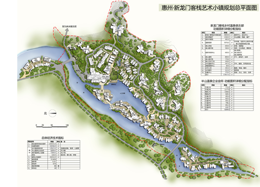 惠州龍門客棧所處位置位于廣東省惠州市龍門縣境內(nèi)。規(guī)劃紅線內(nèi)總面積:134331 平方米(折合約202 畝)?;卣w沿河流岸線呈南北方向帶狀展開,最遠(yuǎn)點(diǎn)直線距離達(dá)820 米,進(jìn)深最大距離達(dá)到330 米。